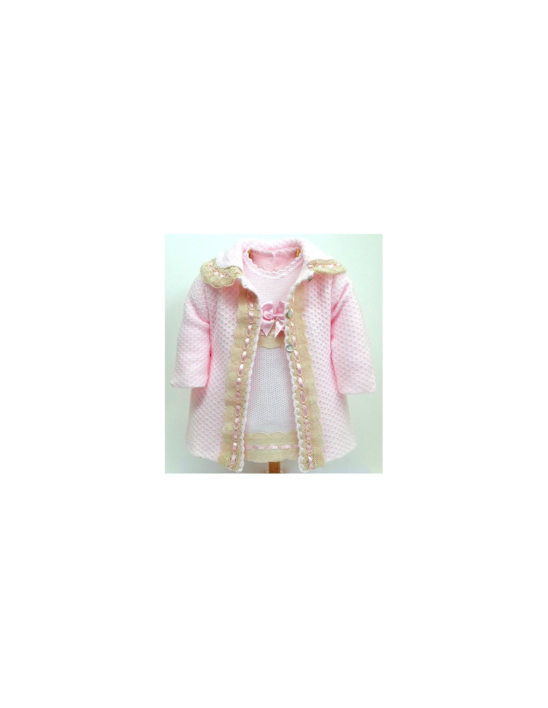 Abrigo de tejido nido, la puntilla en blanco o en crudo y como segundo color al combinar.