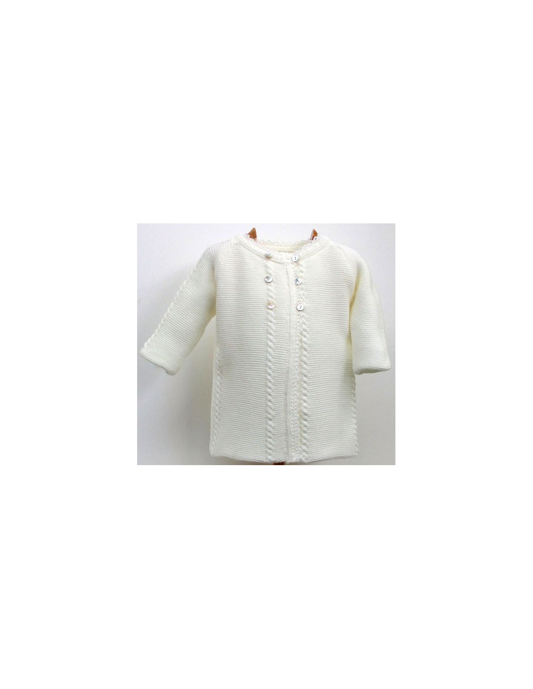 Abrigo de doble capa, el punto formando dibujo de coletas, en colores pastel.