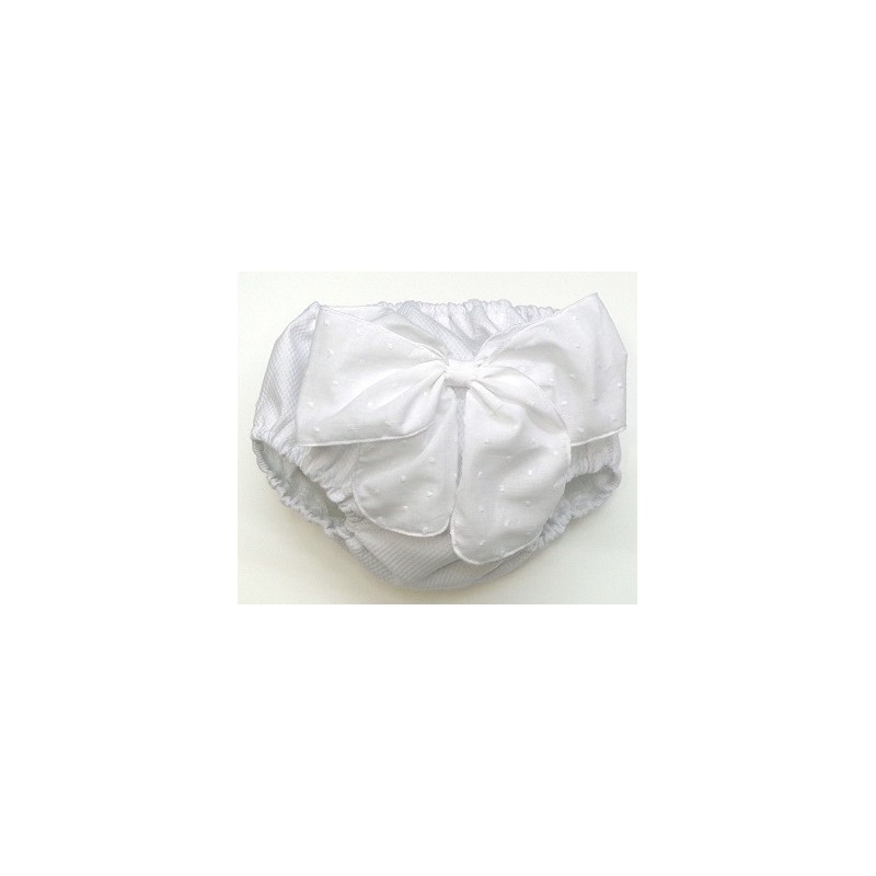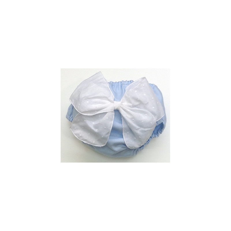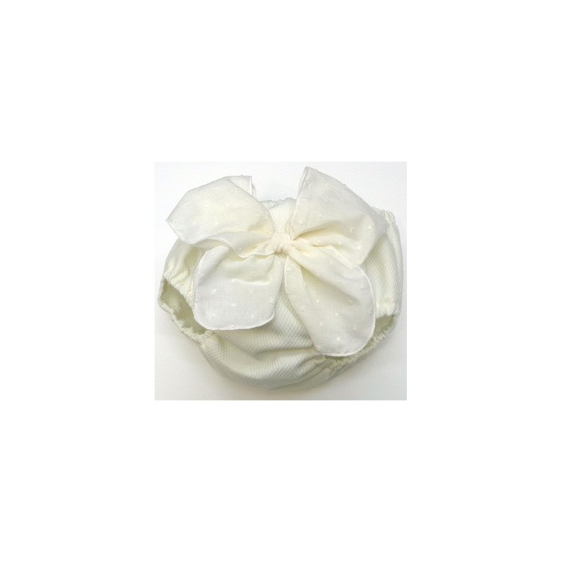 Braga de piqué en varios tonos y tallas con lazada de plumeti en crudo o blanco.