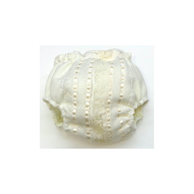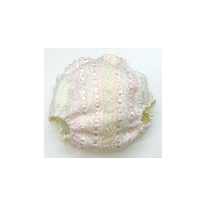 Braguita en colores rosa, celeste o crudo, con piqué, encajes y lazos en crudo.