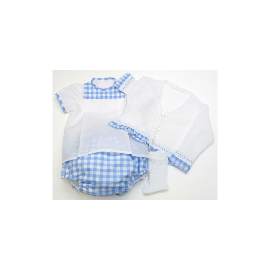 Camisa de batista y de manga corta, con decoraciones de vichy+ braga de vichy+ chaqueta+ calcetin.
