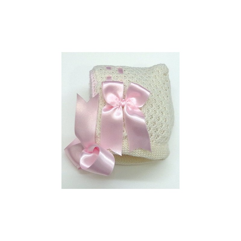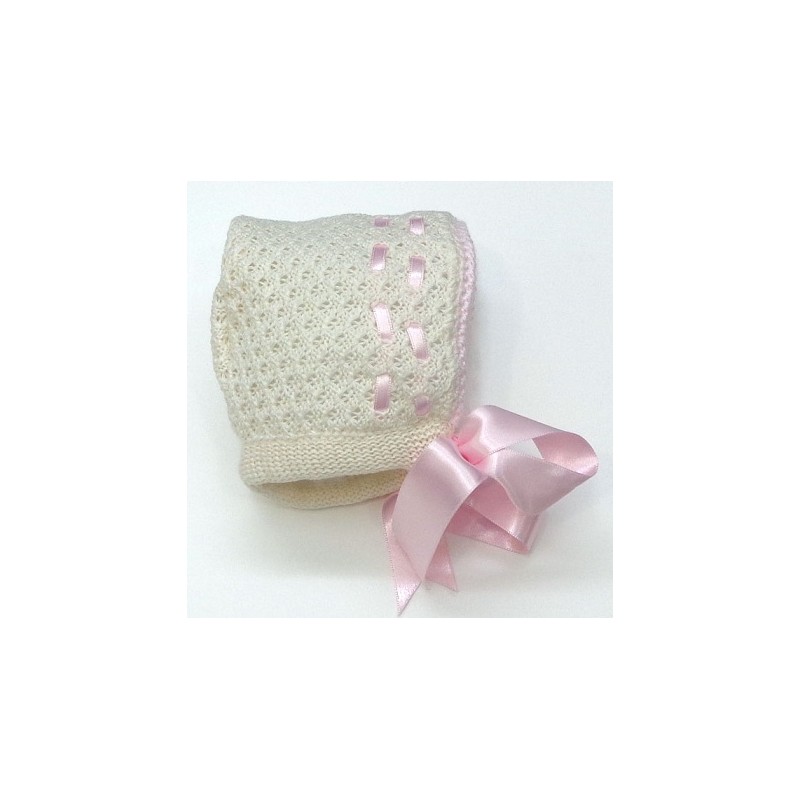 Capota en tejido nido y color crudo, los lazos en color a elegir.