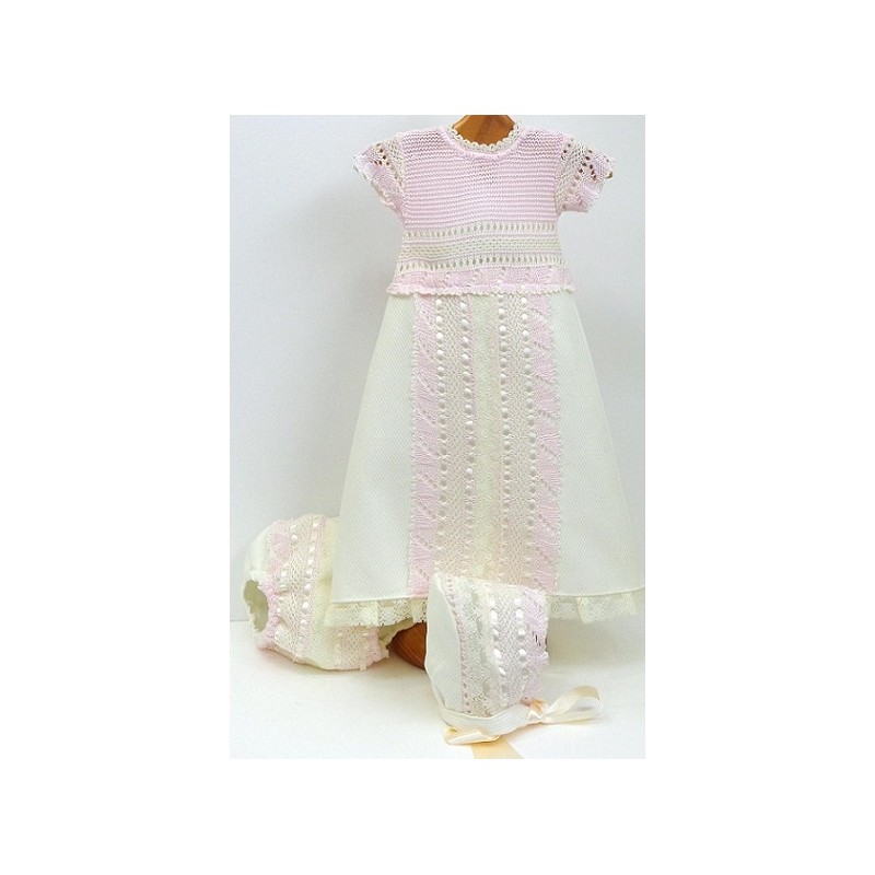 Vestido+braga+chaqueta Md.1383 - Crudo/Rosa claro, 9M