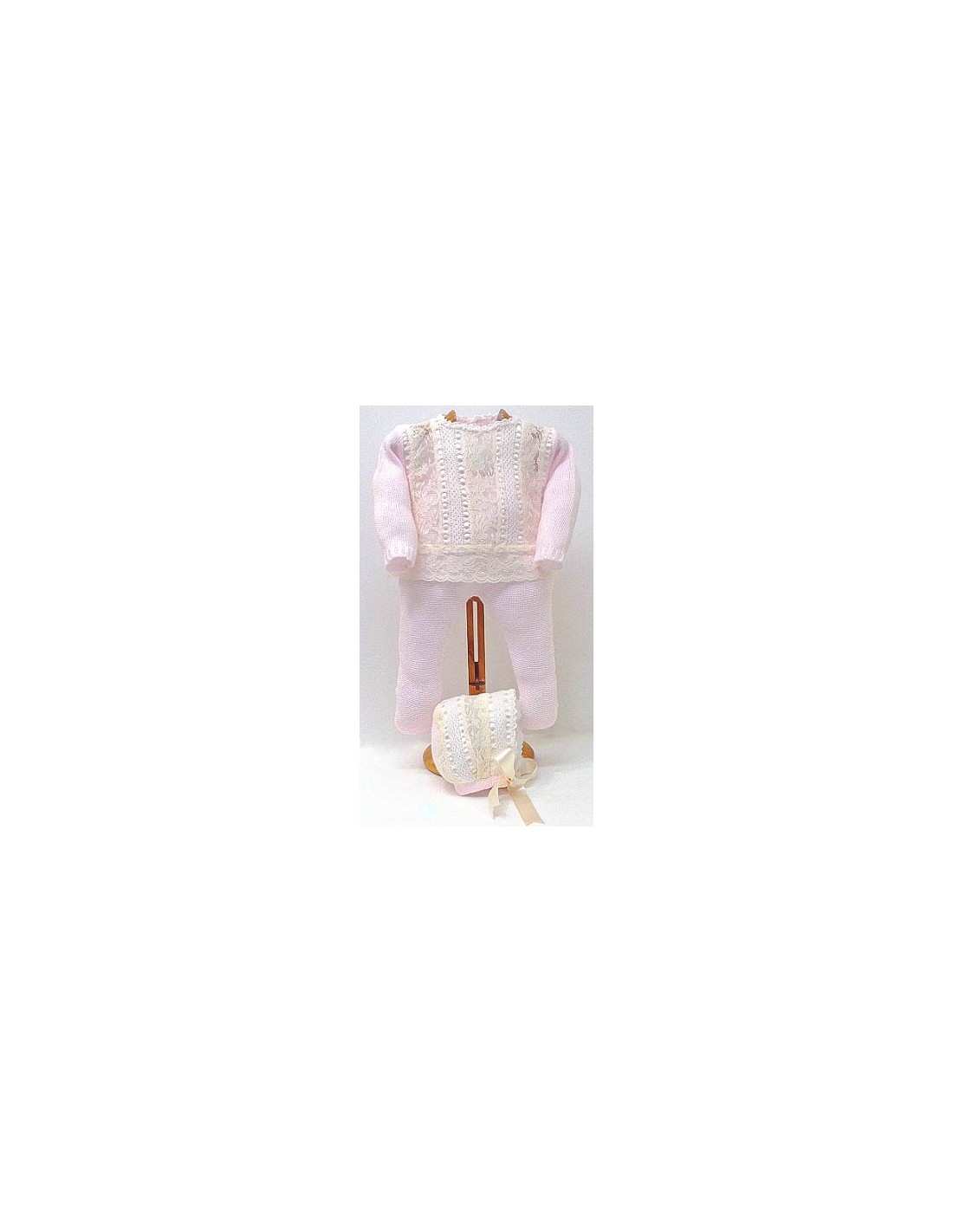 Pelele+patucos Md.1464 - Crudo/Rosa claro, 3M