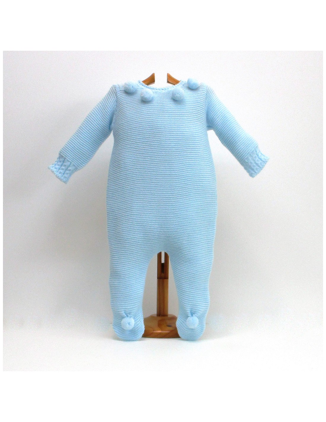 Pelele de punto en colores pastel, con pompones a juego..