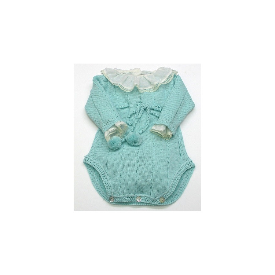 Pelele de punto de manga larga en varios colores pastel y con camisa en color crudo.