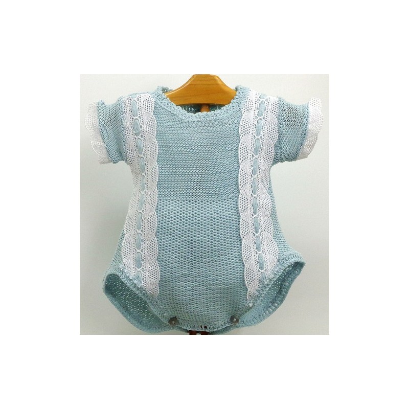 Pelele de punto, manga corta, varios colores y tallas, con encajes en blanco o crudo.
