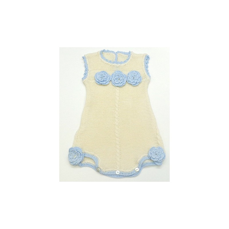 Pelele en colores blanco o crudo, con cocadas y ganchillo artesanal en rosa o celeste.