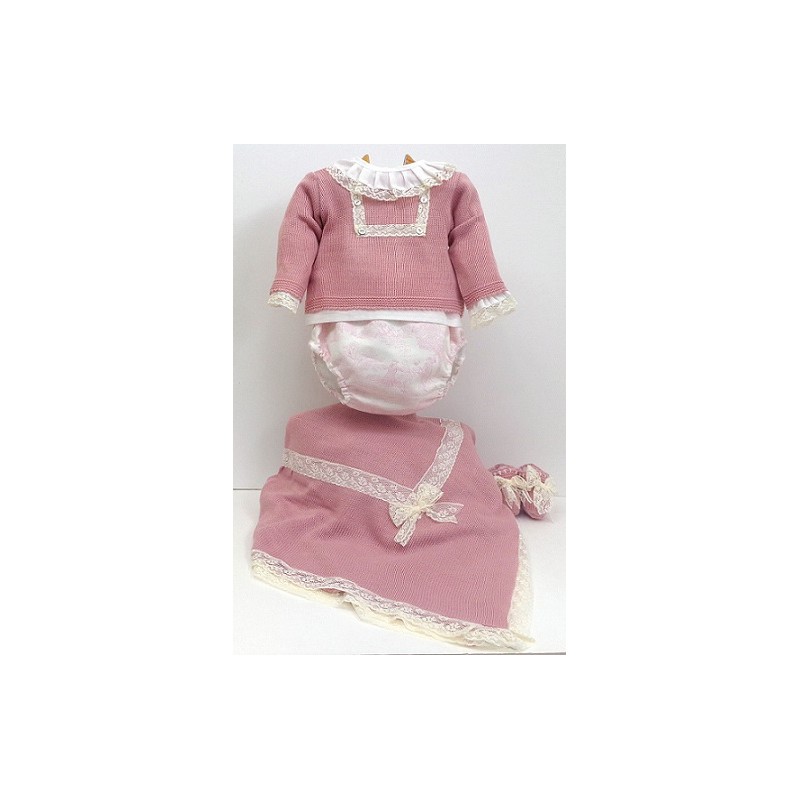 Pelele de punto ruso y toquilla - Crudo/Rosa claro, 0M