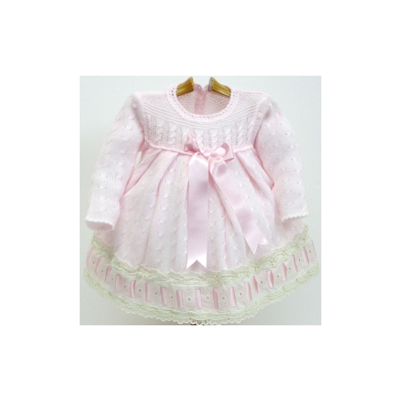Conjunto de Vestido de punto+braga, en varios colores pastel y con encajes de guipure en crudo o en blanco.